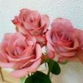 夏の間、暑さで花の持ちが悪くて、買っても向日葵ばかりでした。 今、その反動で・・薔薇を見るとすぐに欲しくなっちゃいます。 秋らしい深い色で、アンティークローズというのでしょうか? 一番右はスプレーバラで「ロマンティックレース」という名前に惚れました。