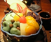 昨日のお店では、こんな豪勢なあんみつ&お茶が味わえて