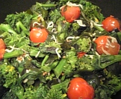 インゲンなら軽く塩茹でしておくとか、トマトは皮を湯剥きして、野菜の味を凝縮